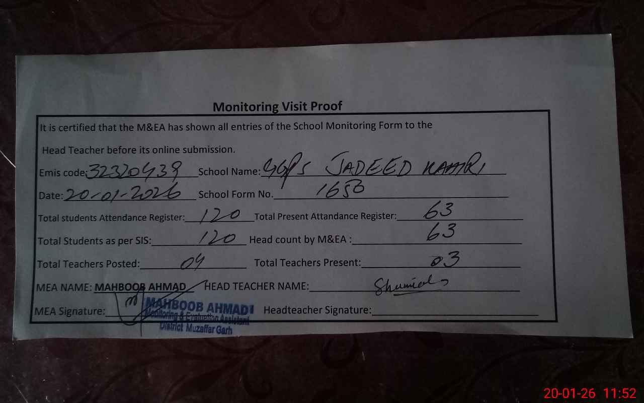 | EMIS Code: 32320439 | Name of School: GGPS JADEED KAHEERI | |||