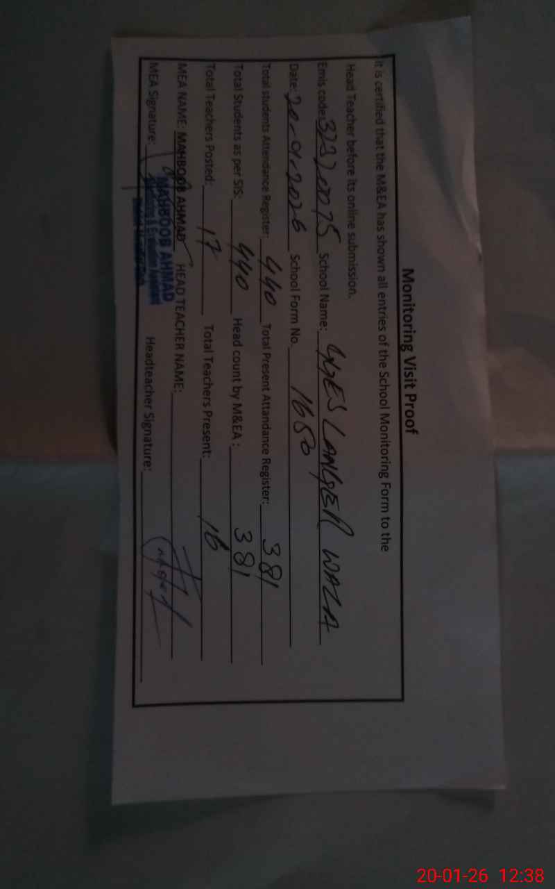 | EMIS Code: 32320075 | Name of School: GGES LANGER WALA | |||