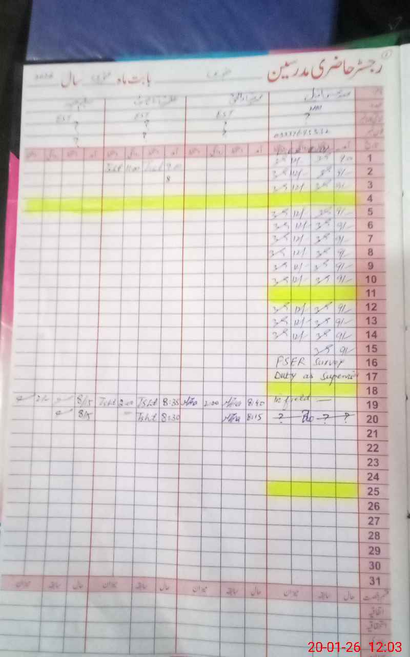 | CNIC | Full Name | Designation | R/C | Absence During Last Calender Month |