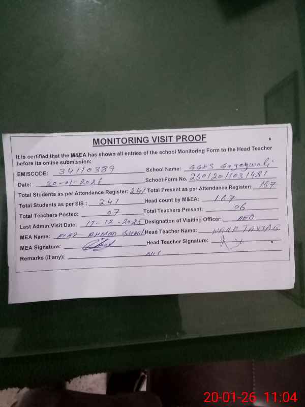 | EMIS Code: 34110389 | Name of School: GGES GAGEY WALI | |||