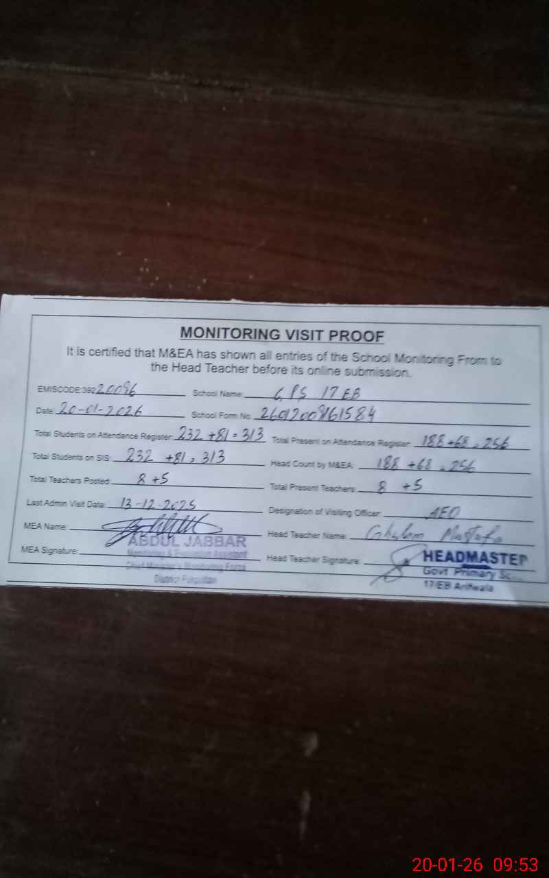 | EMIS Code: 39220096 | Name of School: GPS 17 EB | |||