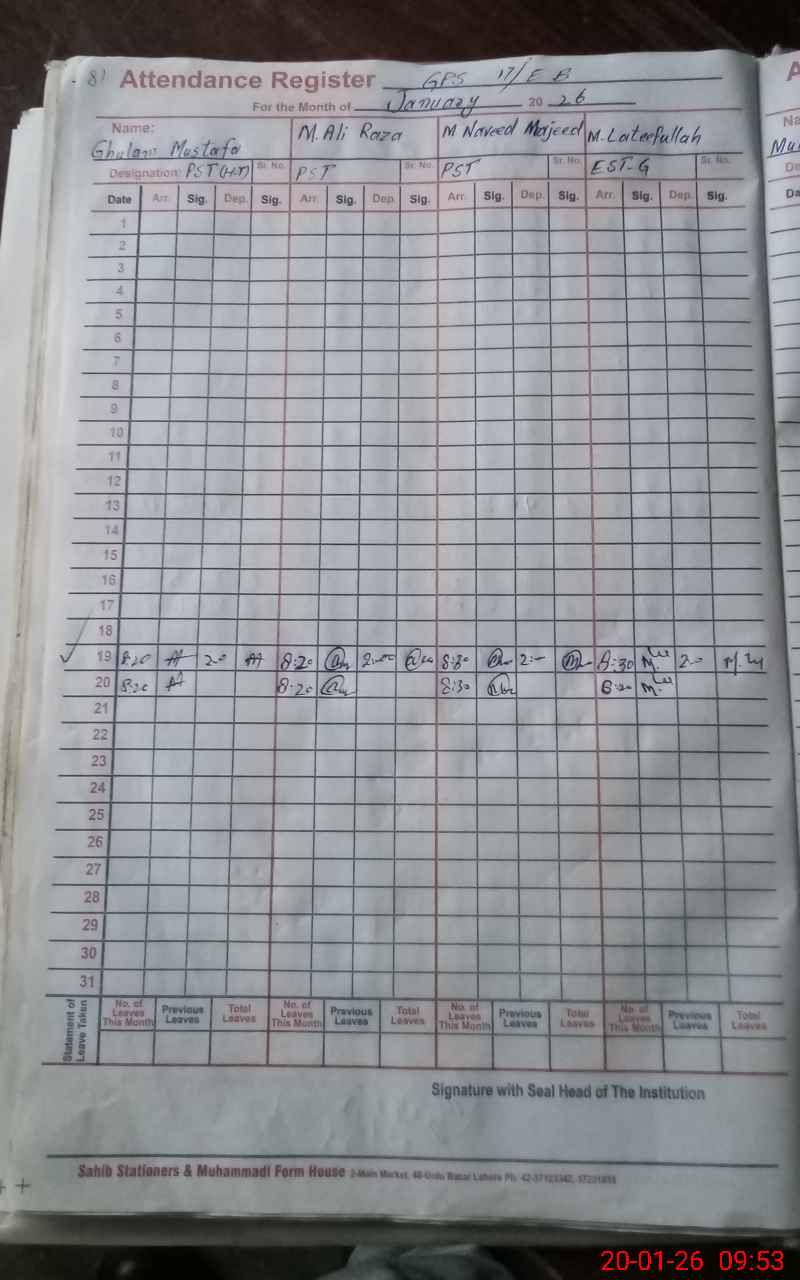 | Name: GH**** MU**** Designation: (School Headmaster's/Headmistress's) PST Phone/Cell Number: 03**** |