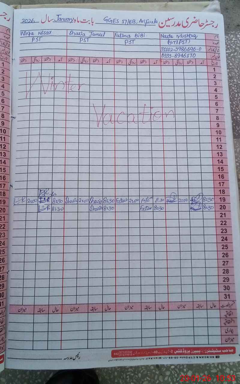 | 36**** | AI**** ZA**** | NAIB QASIDA | Contract | 3 | 0 | 0 | 0 | 0 | 0 | 0 | 0 | 3 | Casual |