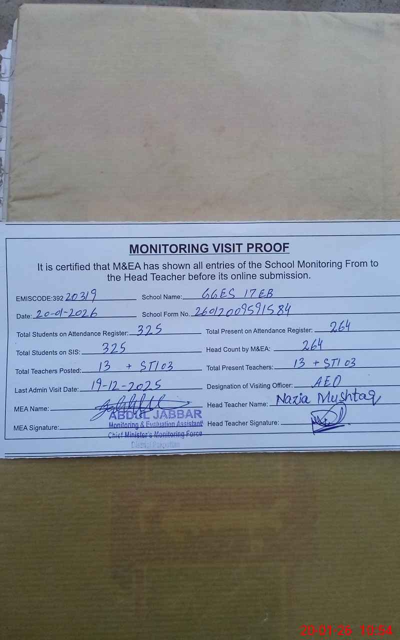 | Attendance Register | Head Teacher | MEA with School | Visit Proof |