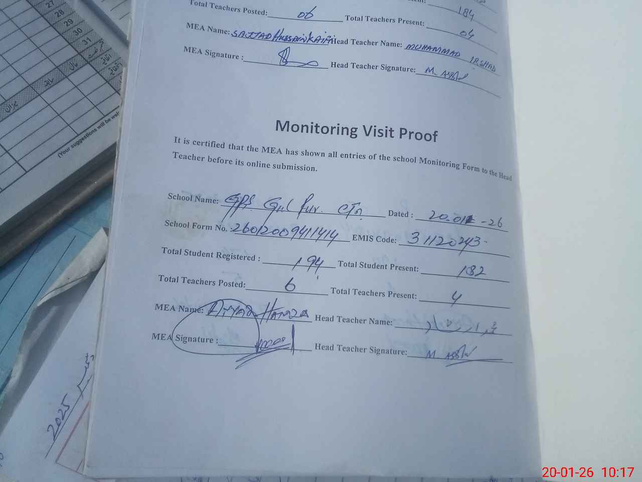 | EMIS Code: 31120243 | Name of School: GPS GUL PUR | |||