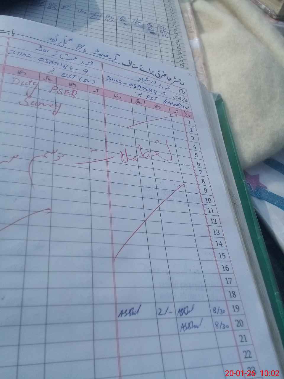| Remarks (Use Separate Page if Required): No attendence marked on students attendence registers till now at 0955 Hrs Roznamcha is not prepared today | |||||
