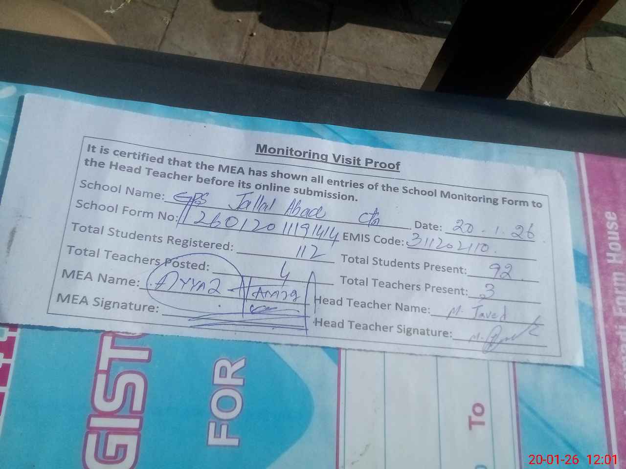 | EMIS Code: 31120210 | Name of School: GPS JALLAL ABAD | |||
