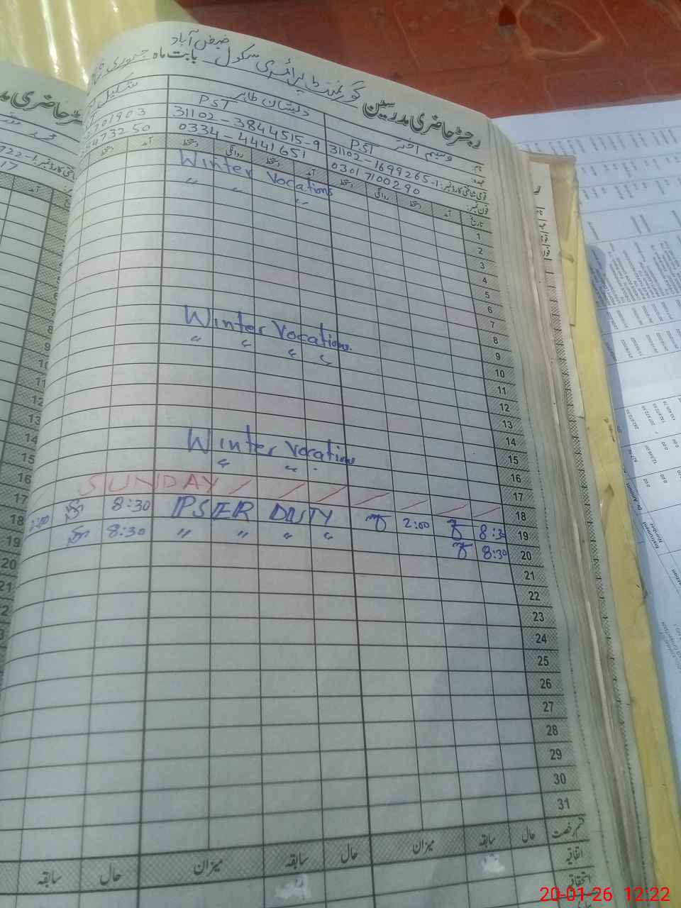 | CNIC | Full Name | Designation | R/C | Absence During Last Calender Month |