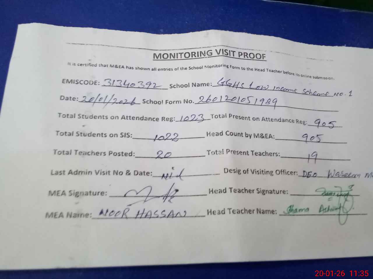 | EMIS Code: 31340392 | Name of School: GGHS LOW INCOME SCHEME NO.1 SETLLITE TOWN | |||