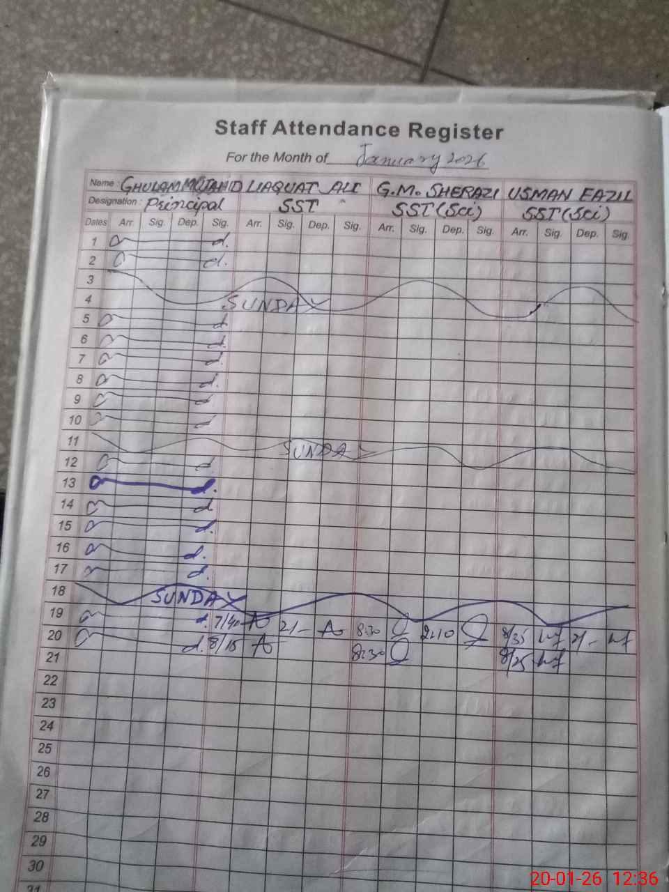 | CNIC | Full Name | Designation | R/C | Absence during last cal. month |