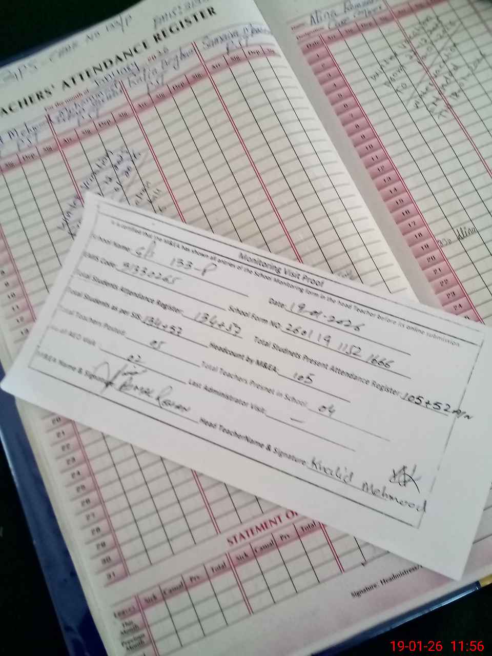 | Attendance Register | Head Teacher | MEA with School | Visit Proof |