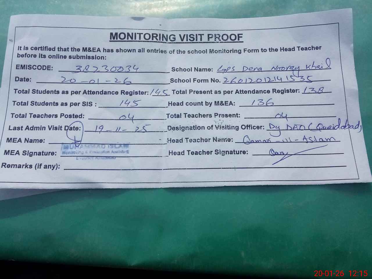 | EMIS Code: 38230034 | Name of School: GPS DERA NOORAY KHAIL SHIMAR | |||