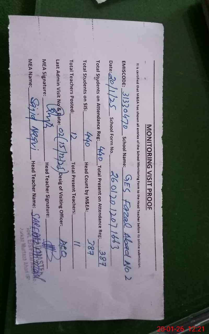 | EMIS Code: 31330470 | Name of School: GES FAZAL ABAD NO. 2 | |||