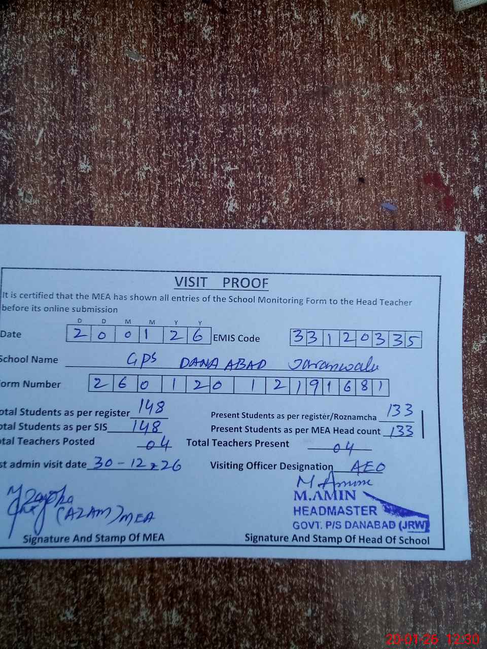 | EMIS Code: 33120335 | Name of School: GPS MOZA DANA ABAD | |||