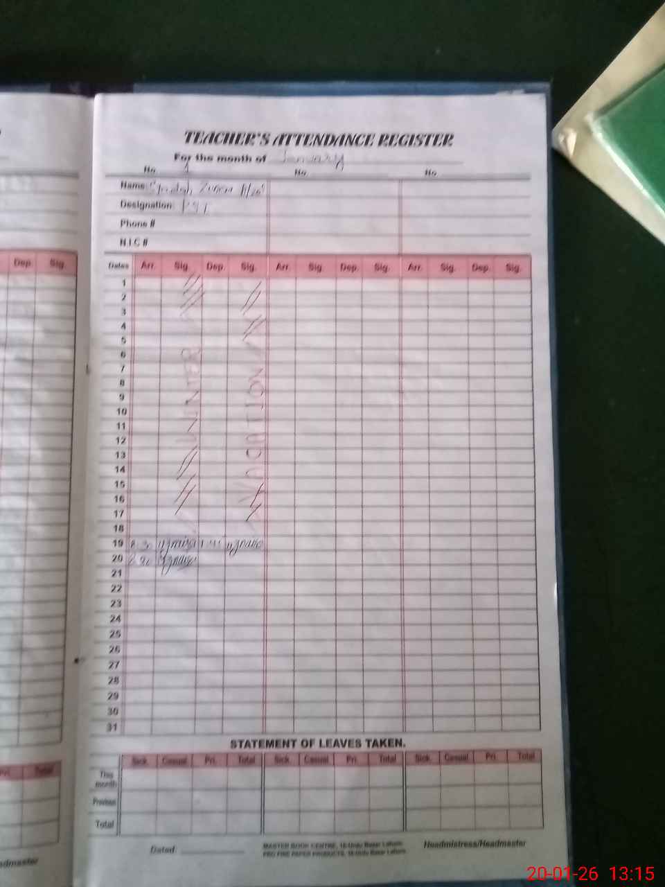 | Name: Sy**** Zu**** Af**** Designation: (School Headmaster's/Headmistress's) PST Phone/Cell Number: 03**** |