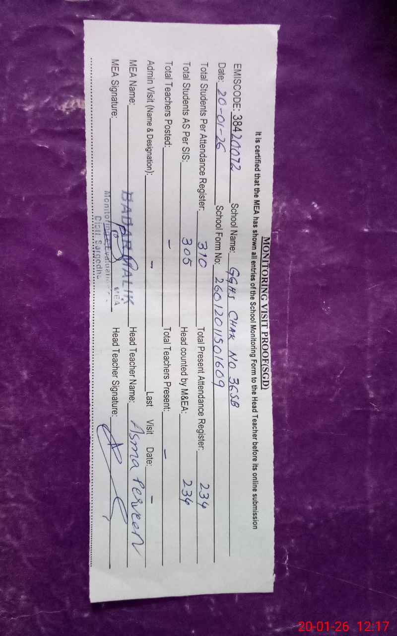 | EMIS Code: 38420072 | Name of School: GGHS CHAK NO.36 SB | |||