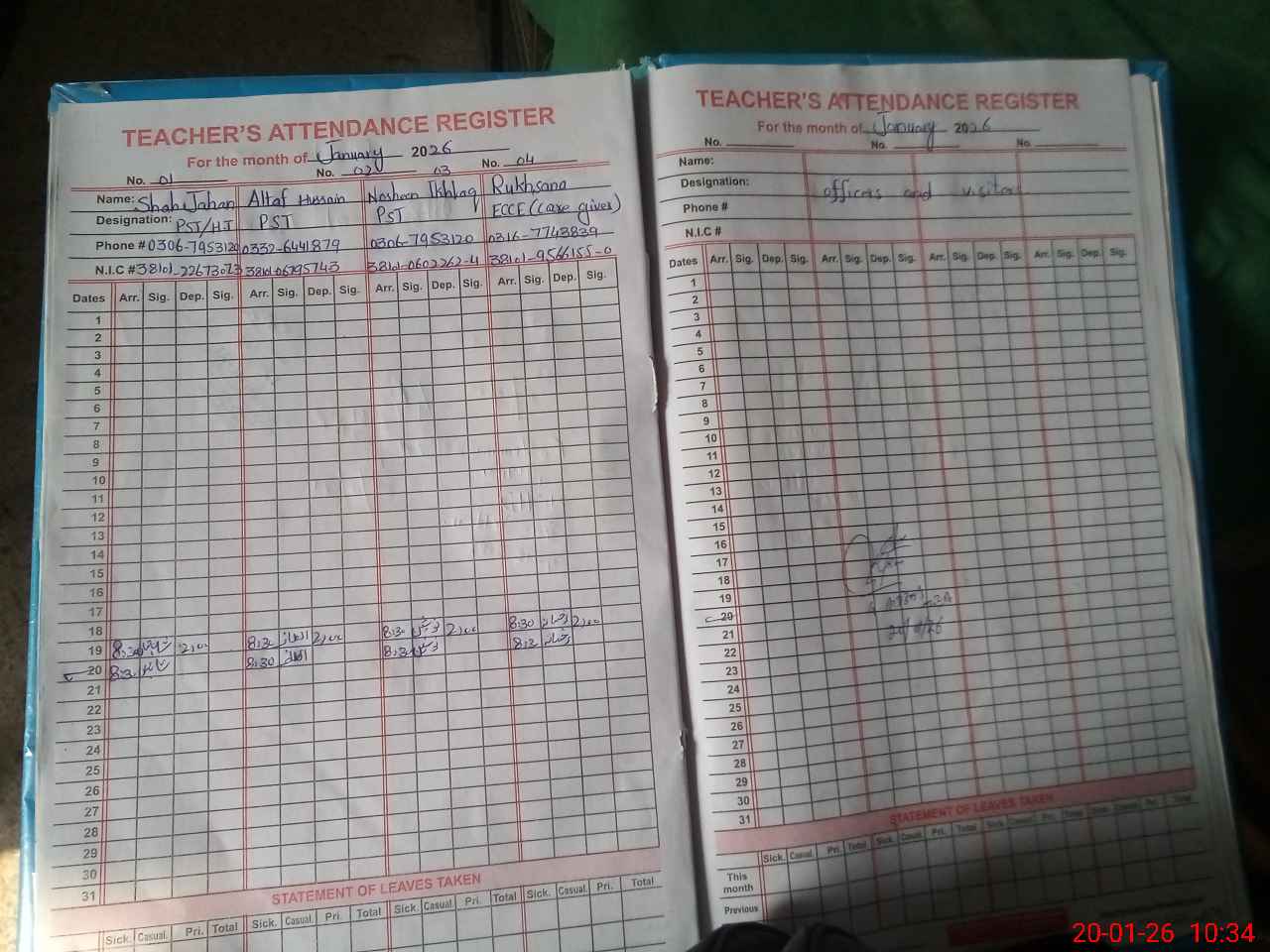 | Name: Sh**** Ja**** Designation: (School Headmaster's/Headmistress's) PST Phone/Cell Number: 03**** |