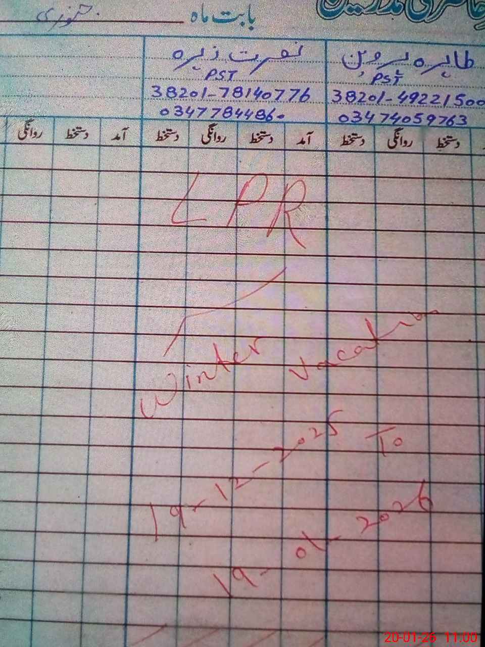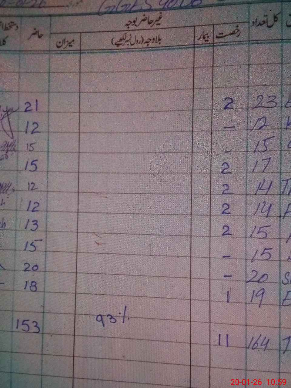 | CNIC | Full Name | Designation | R/C | Absence During Last Calender Month |