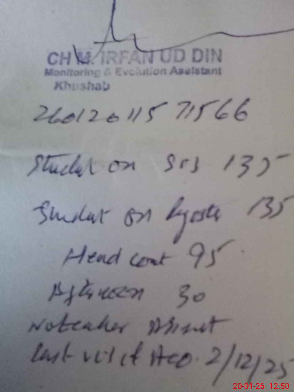 | Monitoring Date: 20-01-2026 | Start Time: 20-01-2026 11:50 AM | End Time: 20-01-2026 12:50 PM | Name of MEA: MU**** IR**** UDDI**** | |