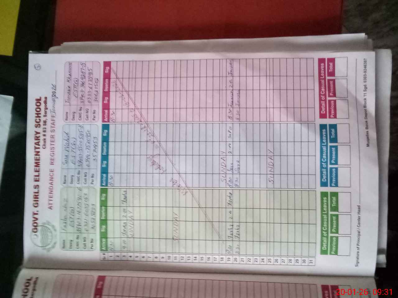 | CNIC | Full Name | Designation | R/C | Absence During Last Calender Month |