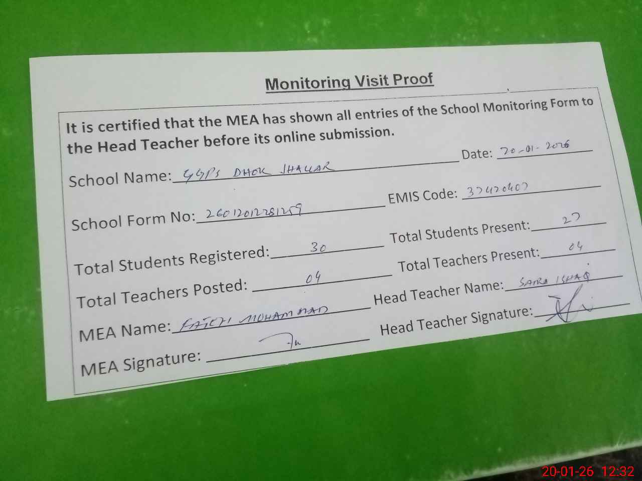 | EMIS Code: 37420407 | Name of School: GGPS DHOK JHALAR | |||