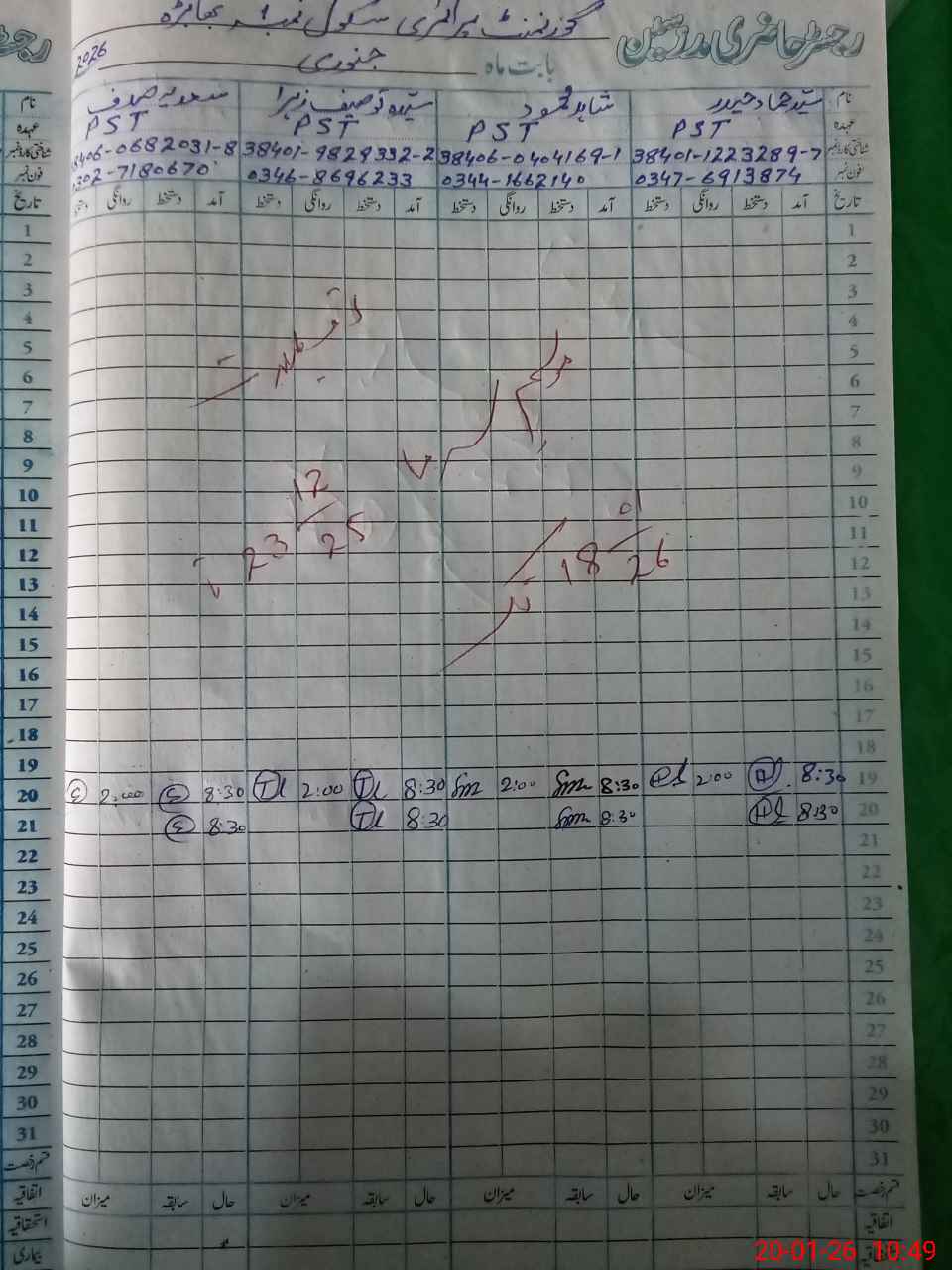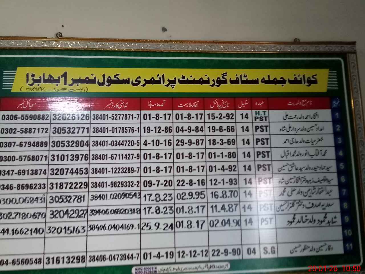 | Name: IF**** AH**** Designation: (School Headmaster's/Headmistress's) PST Phone/Cell Number: 03**** |