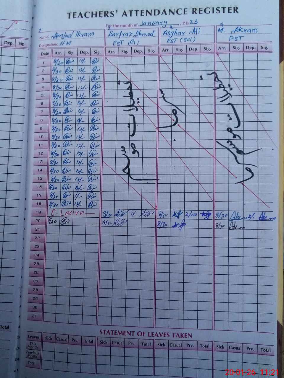 | CNIC | Full Name | Designation | R/C | Absence During Last Calender Month |