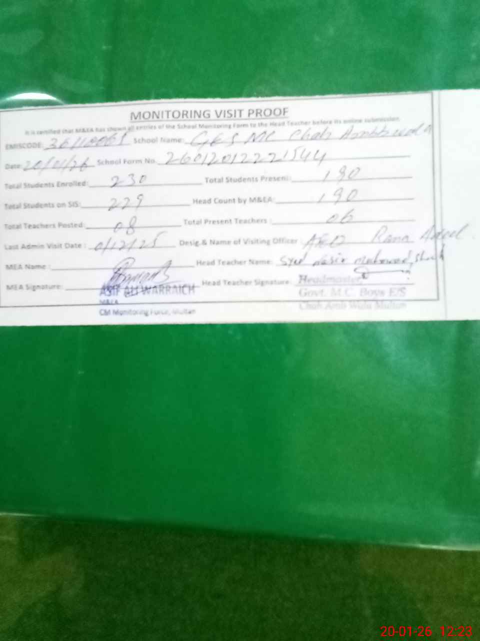 | EMIS Code: 36110065 | Name of School: GES MC CHAH AMBB WALA MULTAN | |||