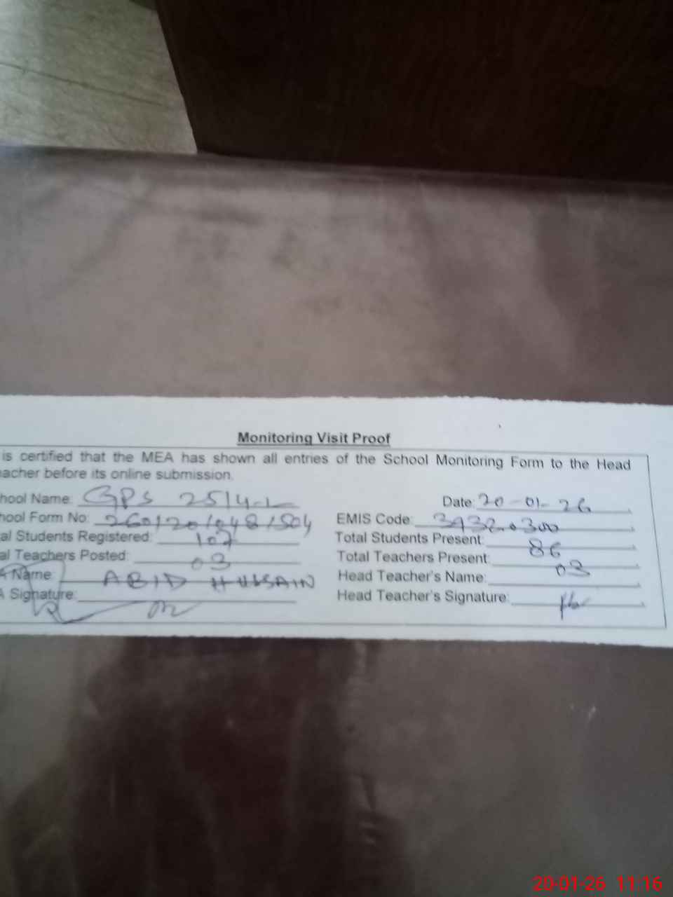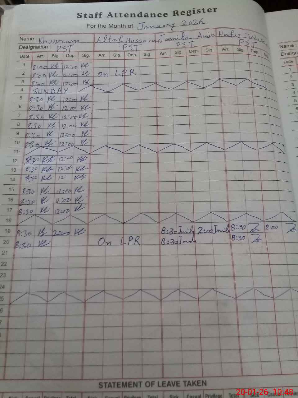 | Name: KH**** SH**** Designation: (School Headmaster's/Headmistress's) PST Phone/Cell Number: 03**** |