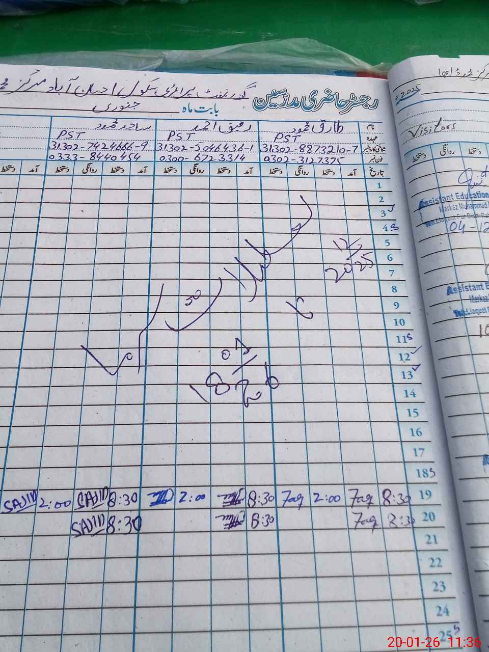 | Monitoring Date: 20-01-2026 | Start Time: 20-01-2026 11:10 AM | End Time: 20-01-2026 11:45 AM | Name of MEA: Kh**** Fa**** | |