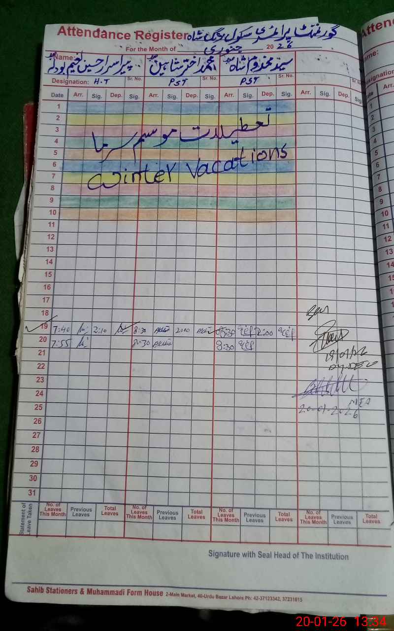 | Attendance Register | Head Teacher | MEA with School | Visit Proof |