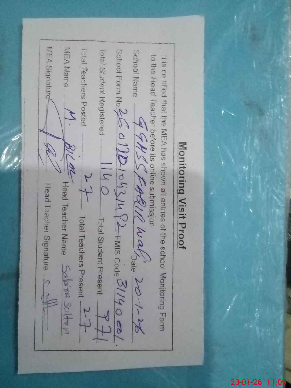| EMIS Code: 31140001 | Name of School: GGHSS FAQIR WALI | |||