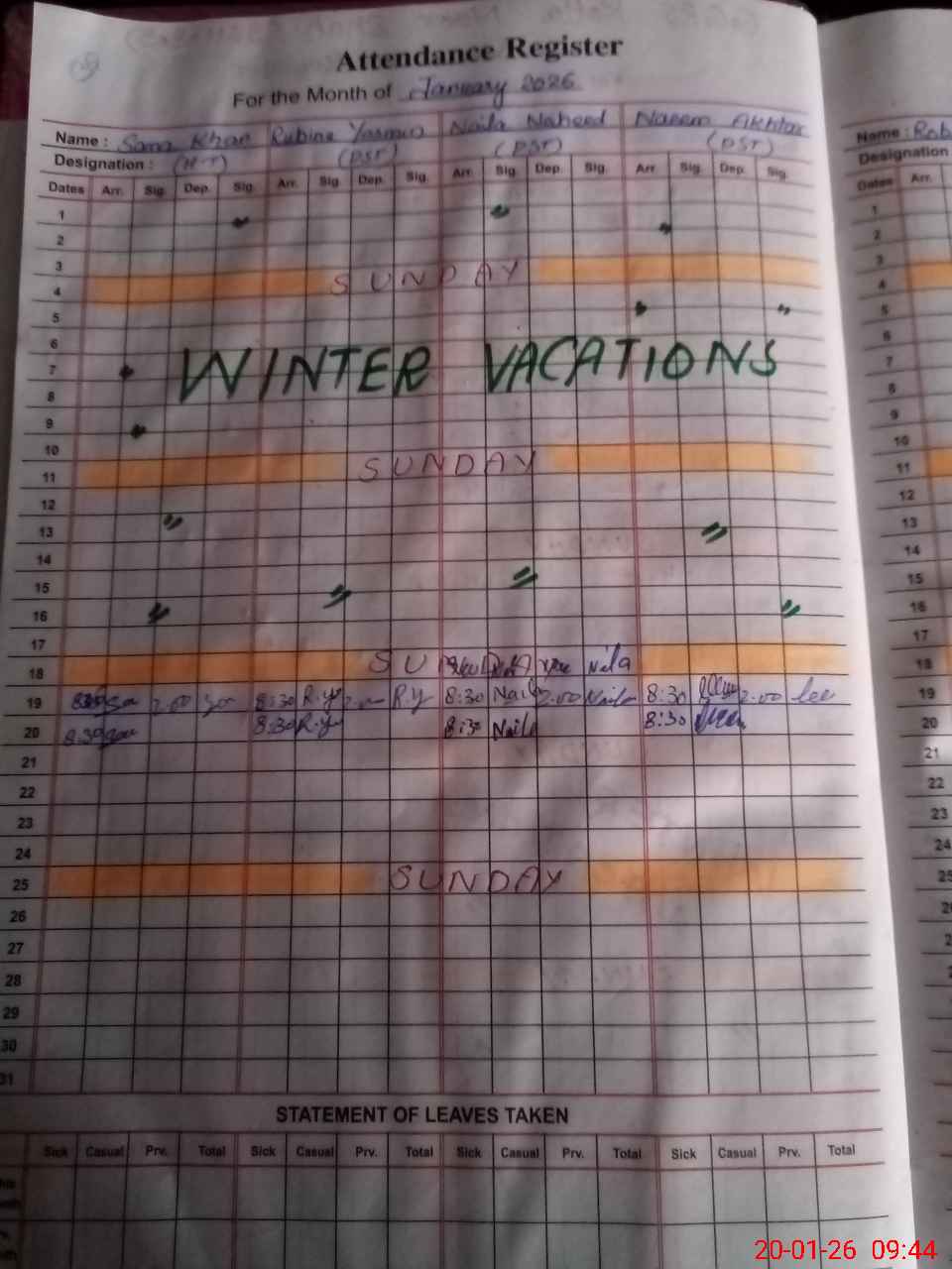 | Leave | Duty | Absent | Maternity | Medical | Ex- Pak |