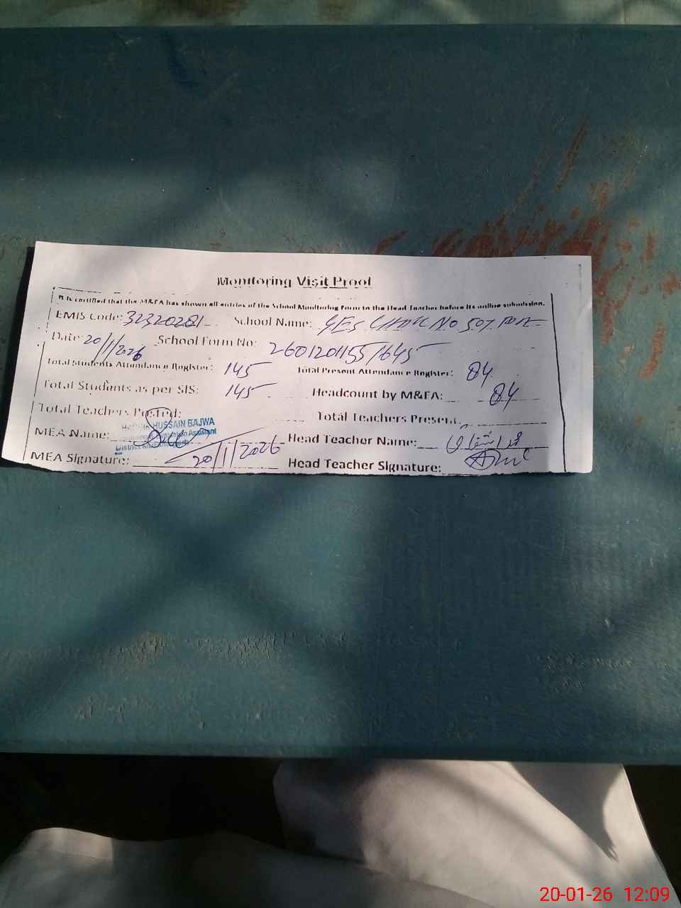 | EMIS Code: 32320281 | Name of School: GES CHAK NO.507 TDA | |||