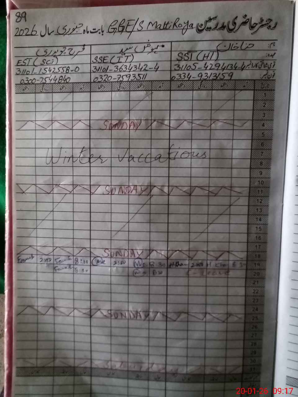 | 31**** | Hi**** Kh**** | SST Science | Regular | 2 | 0 | 0 | 0 | 0 | 0 | 0 | 0 | 2 | Casual |