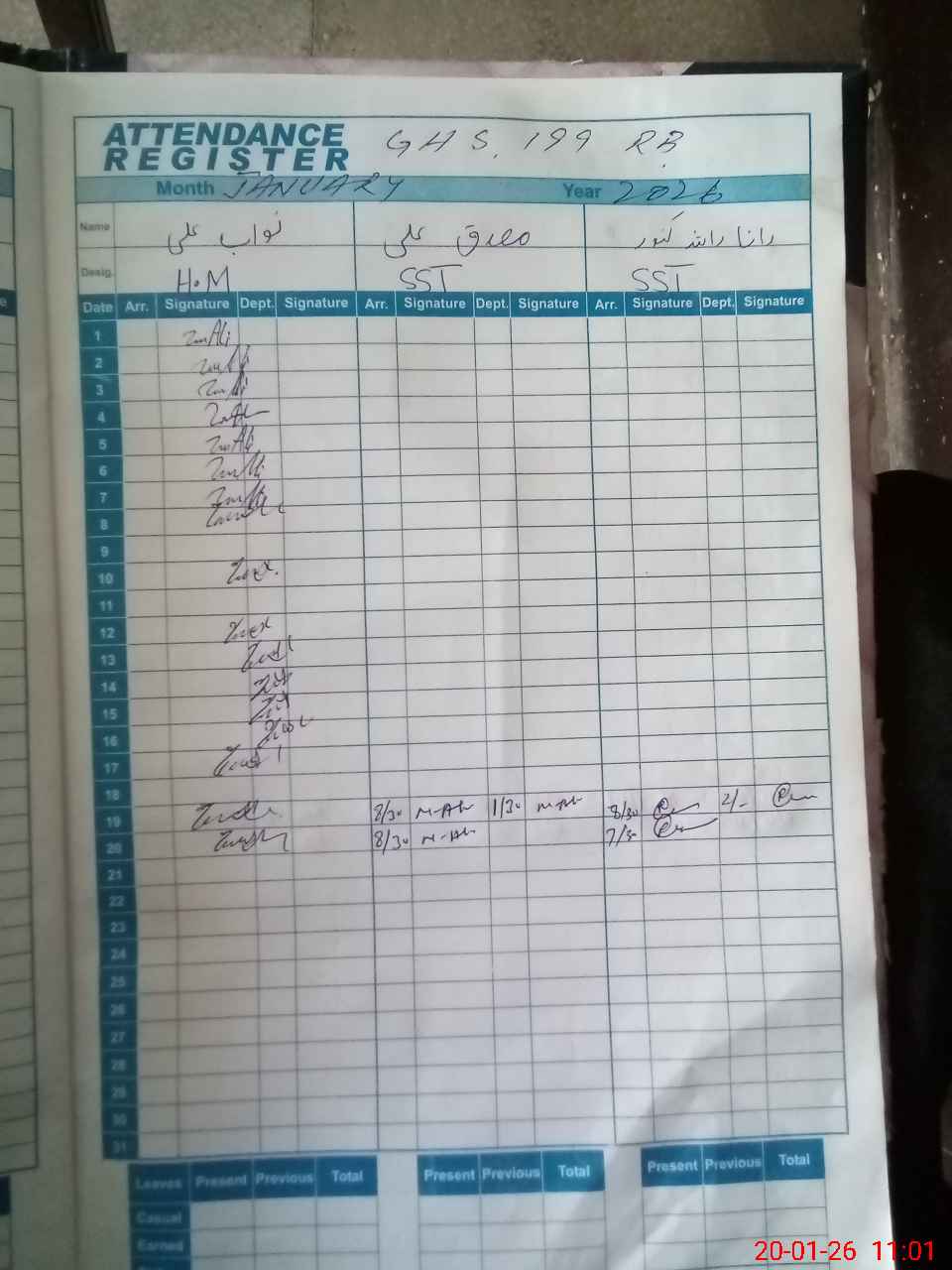 | CNIC | Full Name | Designation | R/C | Absence During Last Calender Month |