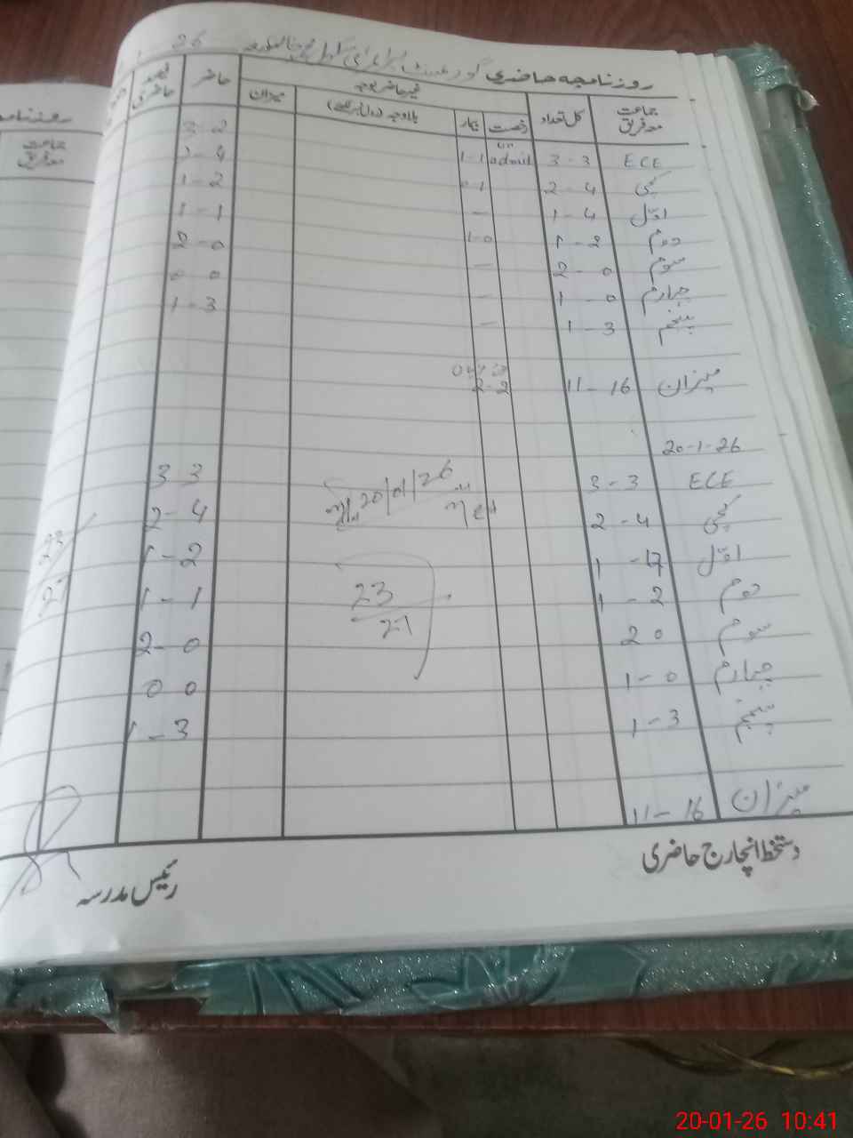 | Total Students Present | 0 | 6 | 3 | 2 | 2 | 0 | 4 | 23 | ||||||||