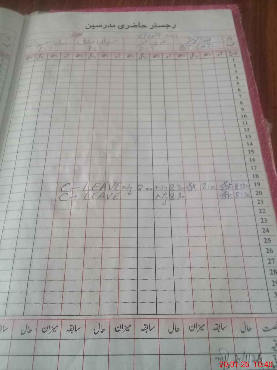 | CNIC | Full Name | Designation | R/C | Absence During Last Calender Month |