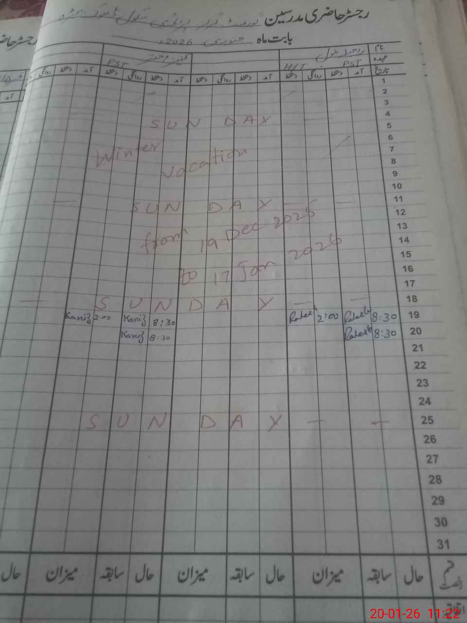 | CNIC | Full Name | Designation | R/C | Absence During Last Calender Month |