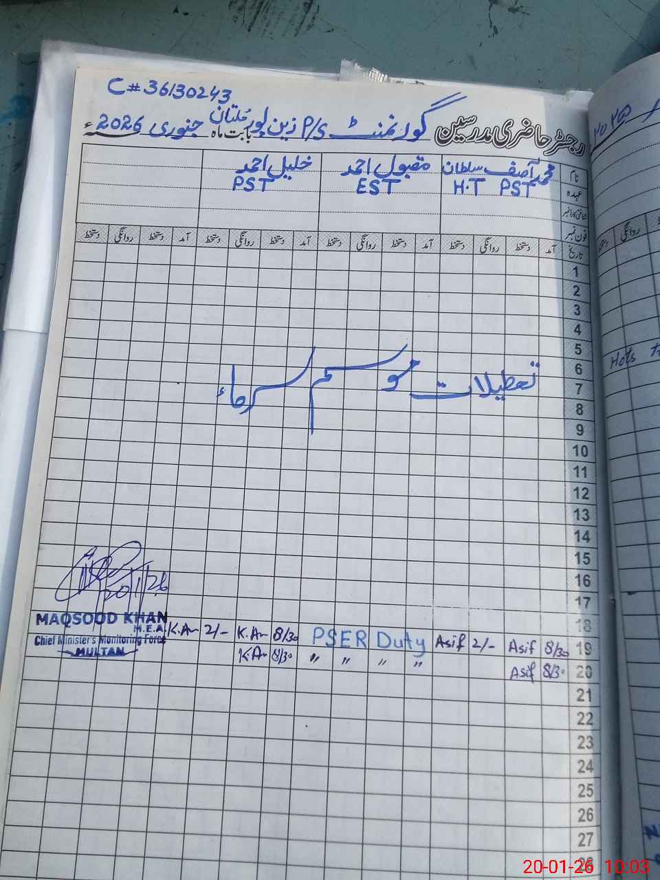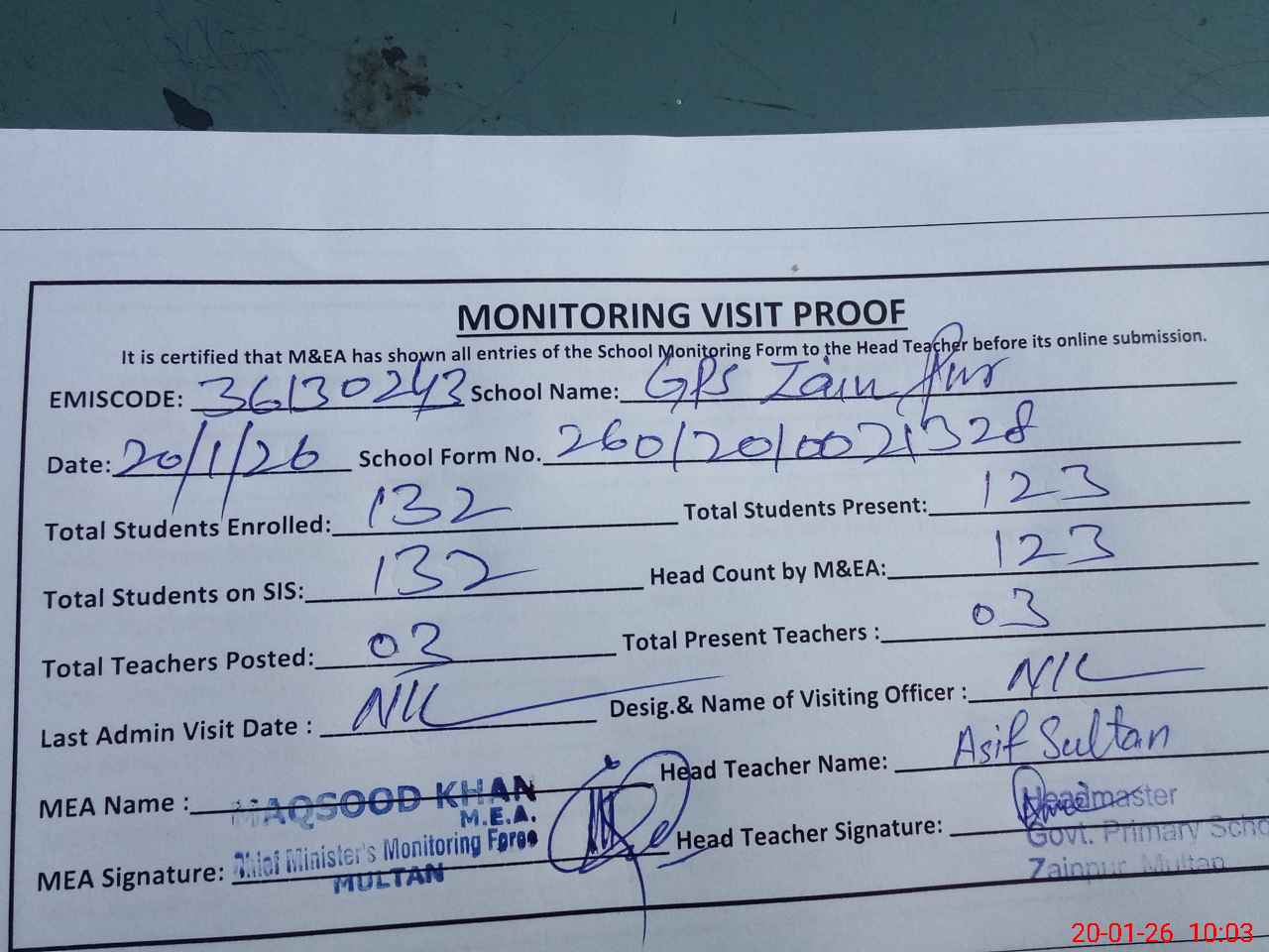 | EMIS Code: 36130243 | Name of School: GPS ZAIN PUR CHAH WADA KHOH MULTAN | |||