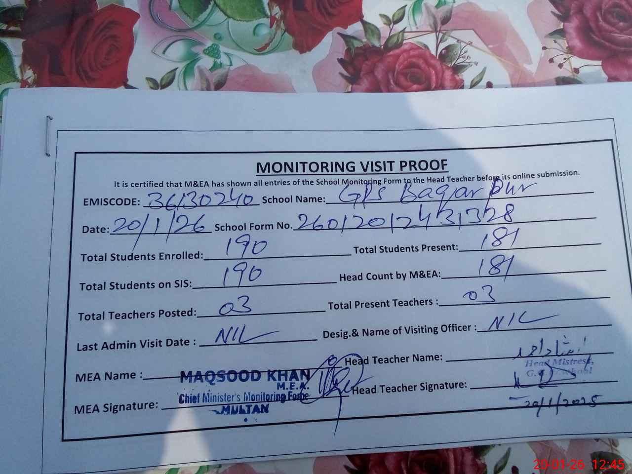 | EMIS Code: 36130240 | Name of School: GPS BAQIR PUR | |||