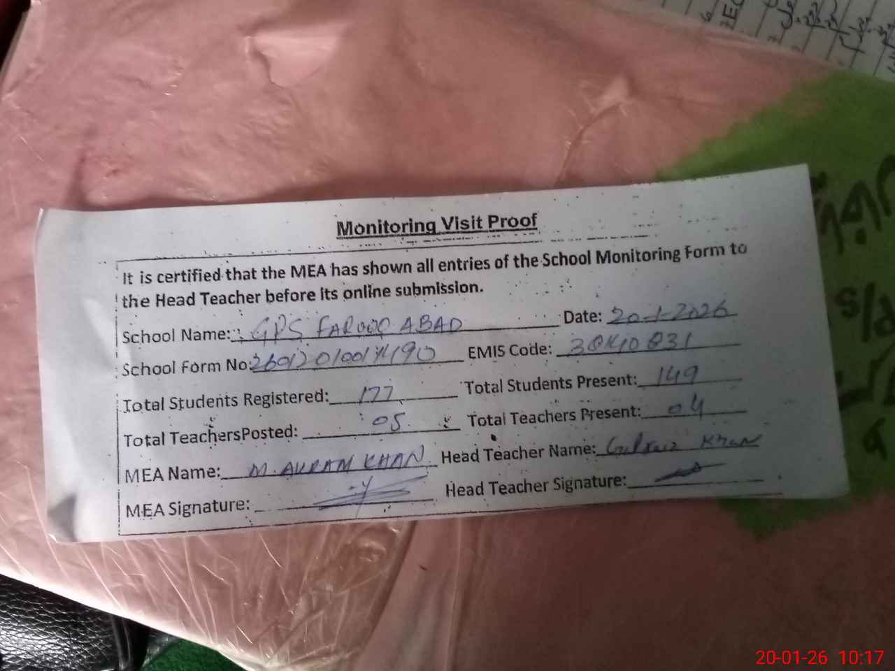 | EMIS Code: 38140831 | Name of School: GPS FAROOQ ABAD | |||