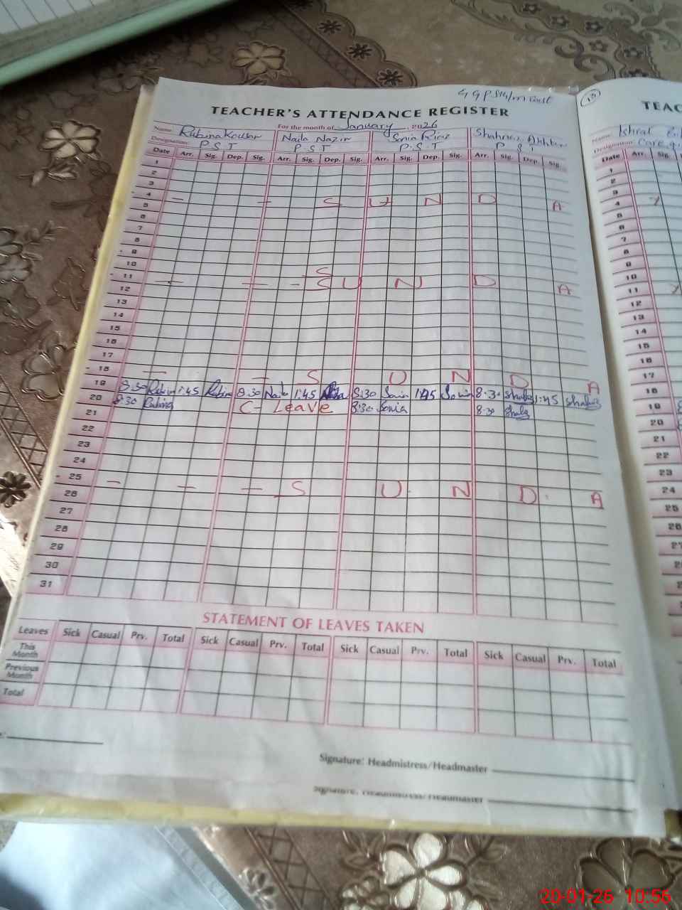 | Attendance Register | Head Teacher | MEA with School | Visit Proof |