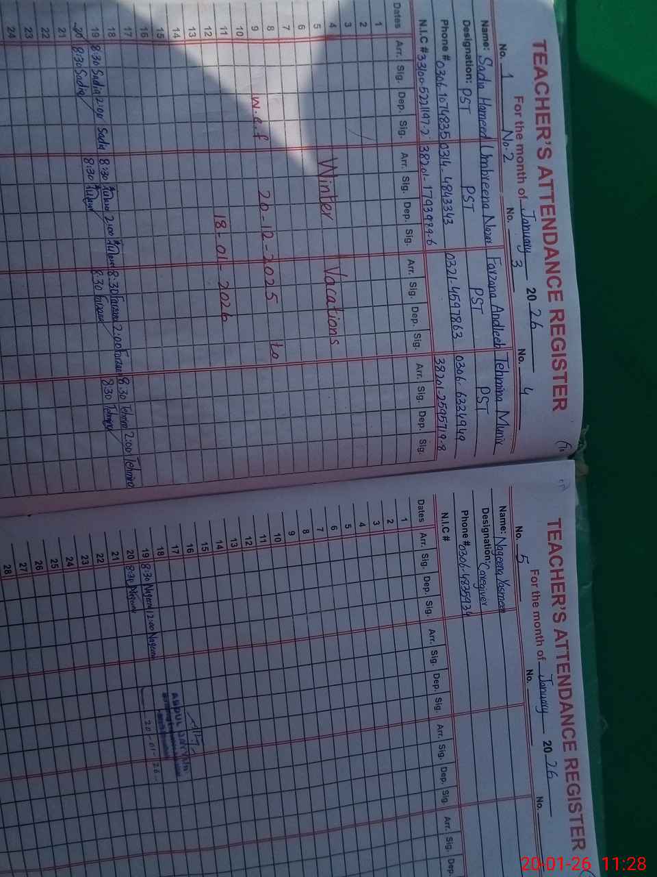 | CNIC | Full Name | Designation | R/C | Absence During Last Calender Month |