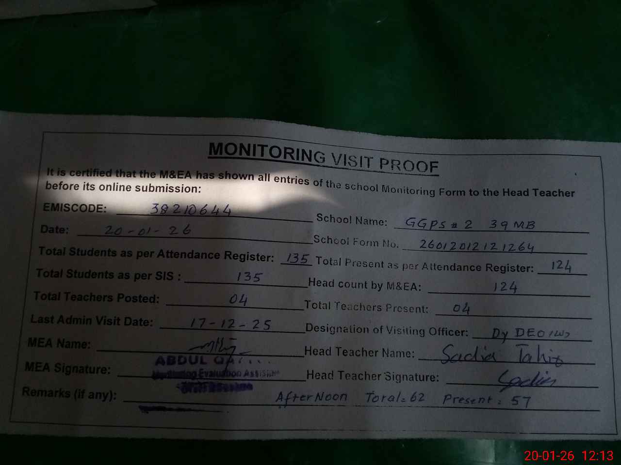 | EMIS Code: 38210644 | Name of School: GGPS NO. 2 CHAK NO. 39 MB | |||