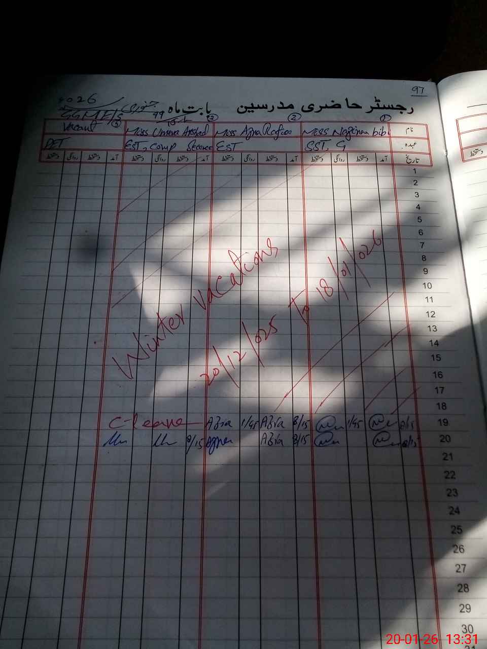 | CNIC | Full Name | Designation | R/C | Absence During Last Calender Month |