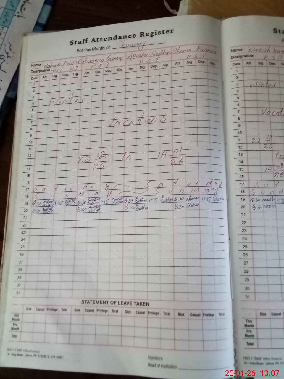 | Leave | Duty | Absent | Maternity | Medical | Ex- Pak |