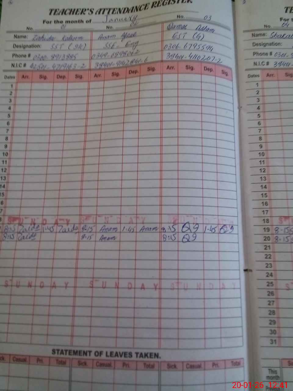 | Name: Za**** Ka**** Designation: (School Headmaster's/Headmistress's) SST Phone/Cell Number: 03**** |