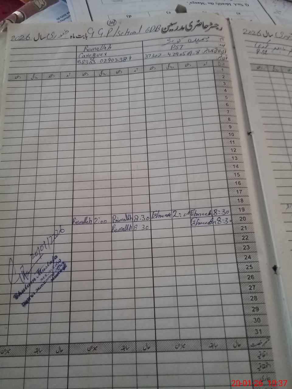 | Name: SA**** SH**** Designation: (School Headmaster's/Headmistress's) PST Phone/Cell Number: 03**** |