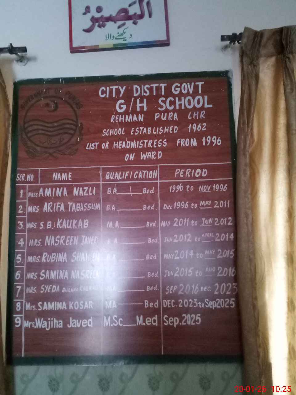 | EMIS Code: 35210904 | Name of School: GGHS REHMAN PURA (EX-MCL) | |||